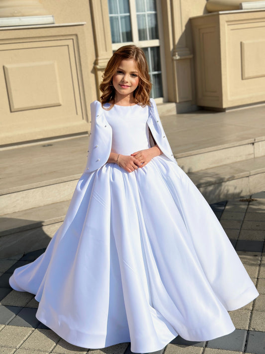 "Majestic Ball Gown with headband , flowing train and crystal embellishments"